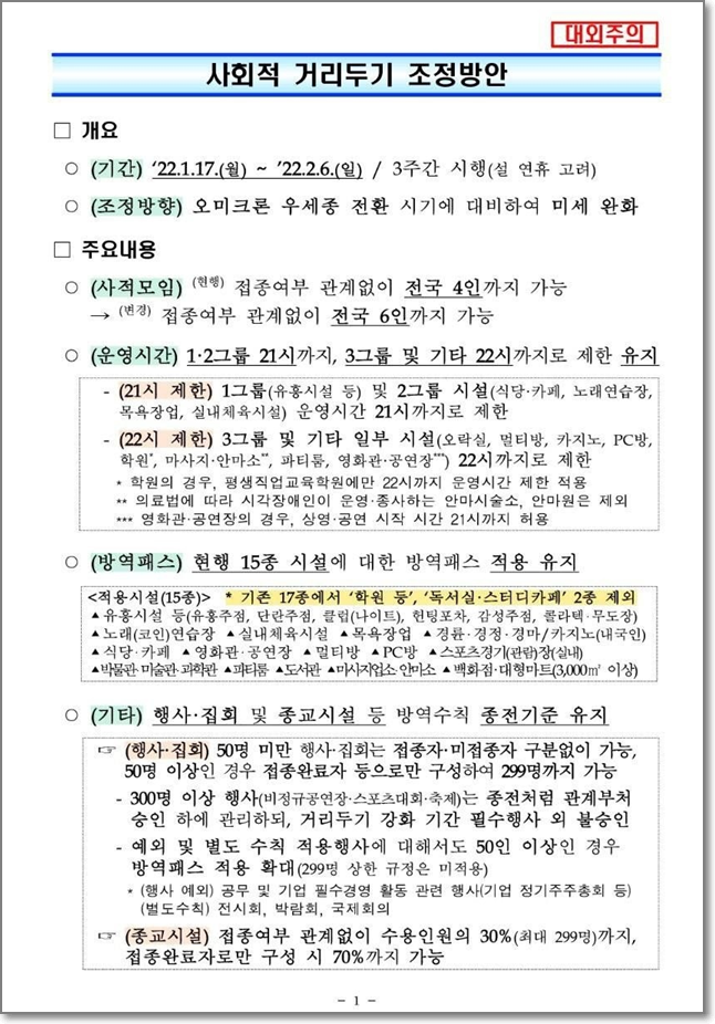 3. 방역패스 현행 15종 시설에 그대로 적용 유지