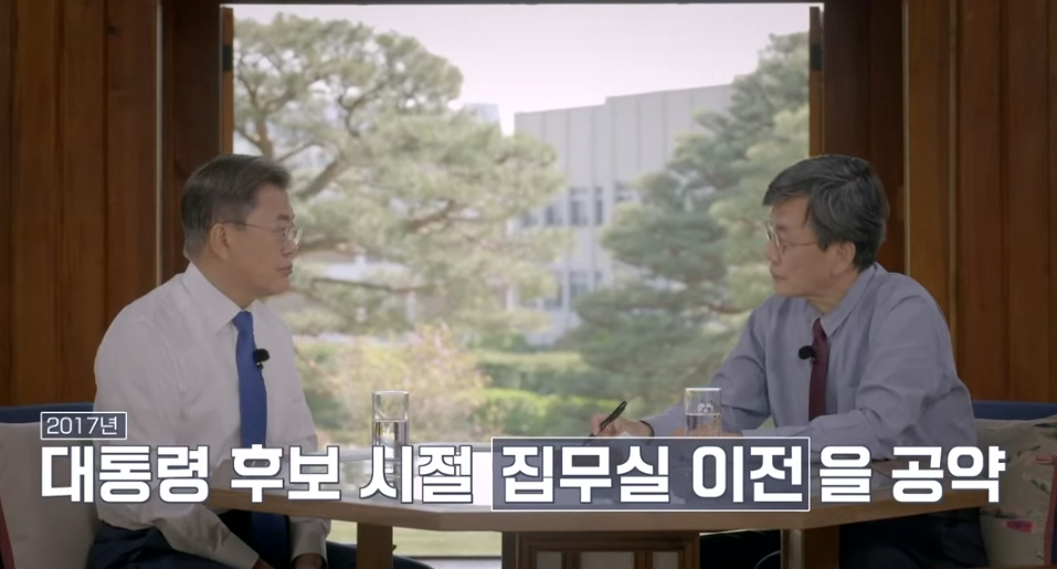 이어서 손석희 앵커가 “집무실 이전은 문 대통령 공약이기도 했다”고 반문하자 문 대통령은 “개념이 다르다. 대통령 집무실과 비서실을 광화문 정부종합청사로 옮기고 행안부가 세종시로 이전하게 되면 본관이나 영빈관, 헬기장이나 지하 벙커 위기센터 등은 시민에 개방한 이후에도 청와대가 사용한다는 개념이었다"고 답변했습니다.
