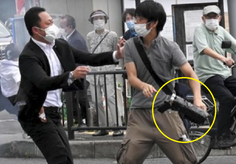 일본 경찰은 사건 직후 현장에서 야마가미 데쓰야(41, 나라시 거주)를 체포했고 소지하던 총도 압수했으며 현재 그를 살인 혐의로 조사하고 있습니다.