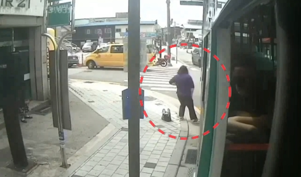 과연 이 여성분은 어째서 버스 뒷바퀴에 발을 넣었던 것일까요?