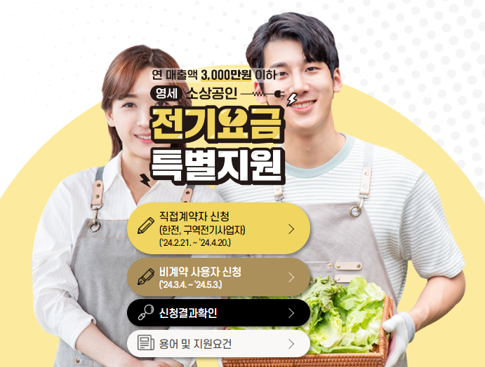 - 신청 방법: 소상공인전기요금특별지원.kr에서 온라인 신청.