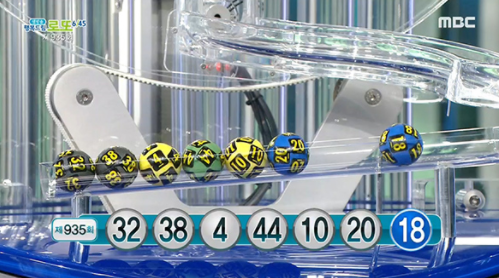 제 935회 동행복권 로또 1등 당첨번호는 공나온순서대로 32, 38, 4, 44, 10, 20 입니다. 보너스번호는 18 입니다.