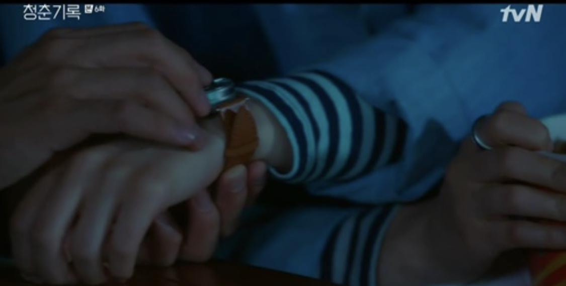 사혜준은 안정하에게 팝콘을 건네며 “내가 좋아해, 너는 안 좋아해?”라고 물었고 안정하는 “팝콘은 캐러멜이지”라고 말한 뒤, 사혜준이 시간을 물어보자 “시각 장애인용 시계야 촉감을 사용해. 해볼래?”라고 말했습니다.