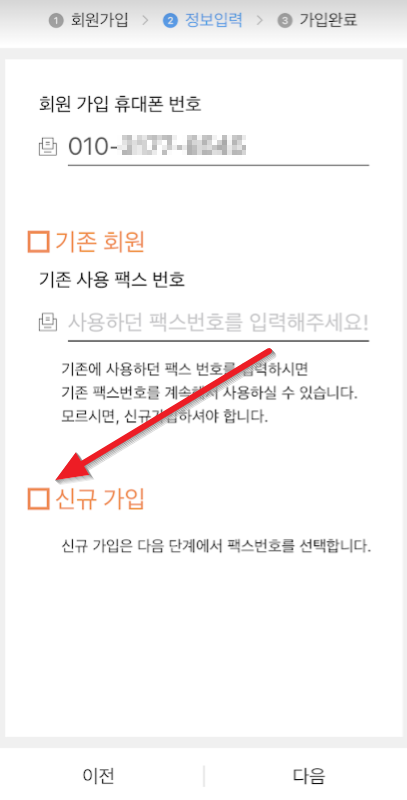 맨위에 본인의 휴대폰번호를 쓰고, 신규가입을 체크합니다.