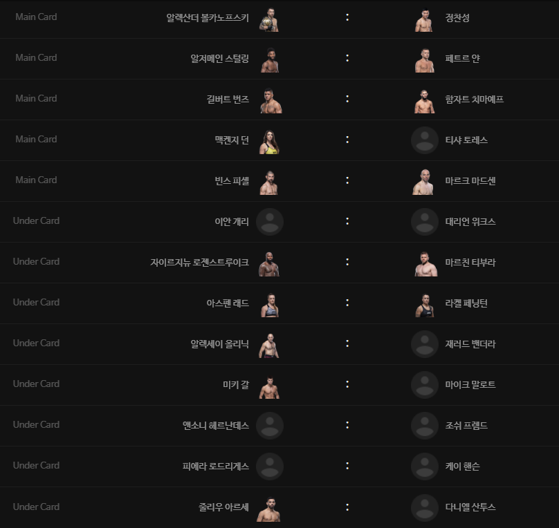 UFC 273 ‘정찬성 vs 볼카노프스키' 메인카드 일정