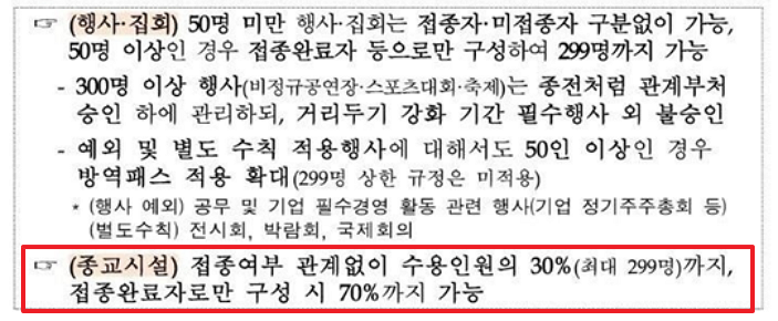 4. (기타) 행사 및 집회, 종교시설 등 방역수칙은 종전 기준 그대로 유지