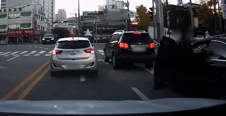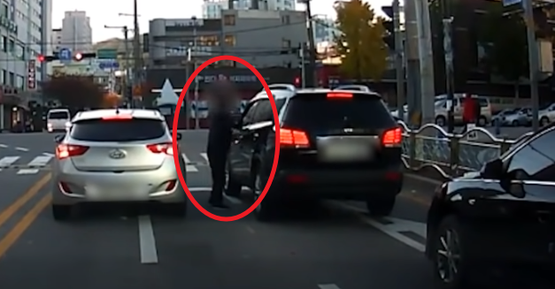 A씨는 "직우차선이고 비켜줬다가는 횡단보도 위에 서 있게 돼서 비켜주지 않고 신호가 바뀌기를 기다리고 있었다"고 말했습니다. 그러나 이를 참지 못한 뒤차 운전자 B씨는 차에서 내려 A씨 차량 창문을 두들겼습니다.