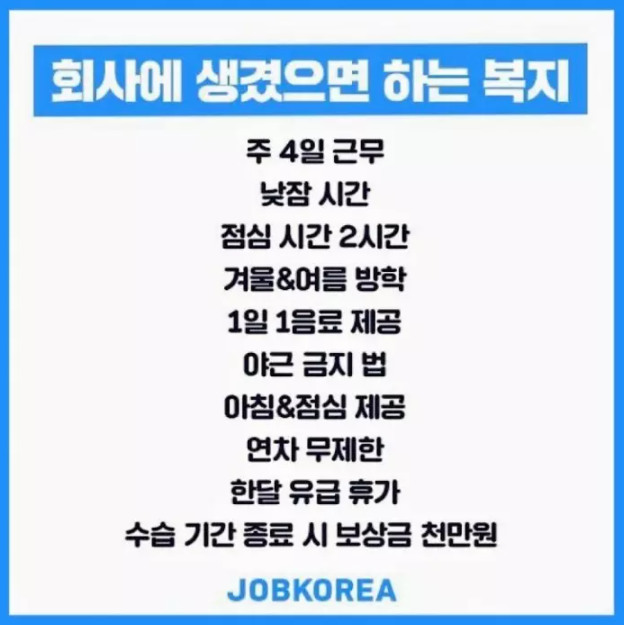 이상으로 잡코리아에서 조사한 "회사에 생겼으면 하는 복지제도"에 대해서 알아보았습니다.