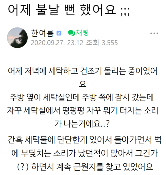 다음은 인터넷 커뮤니티에 올라온 내용입니다.