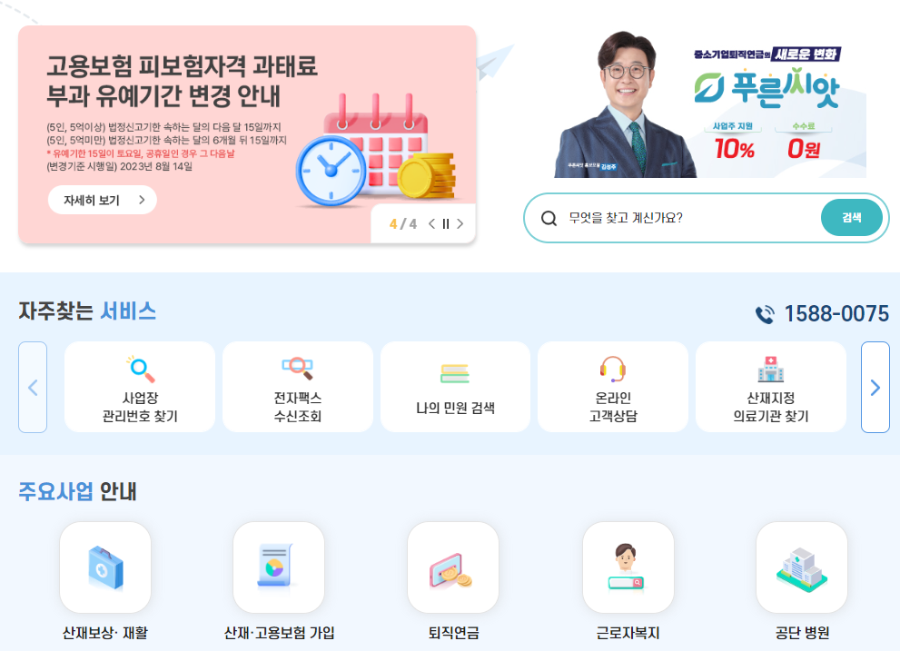 근로복지공단 홈페이지