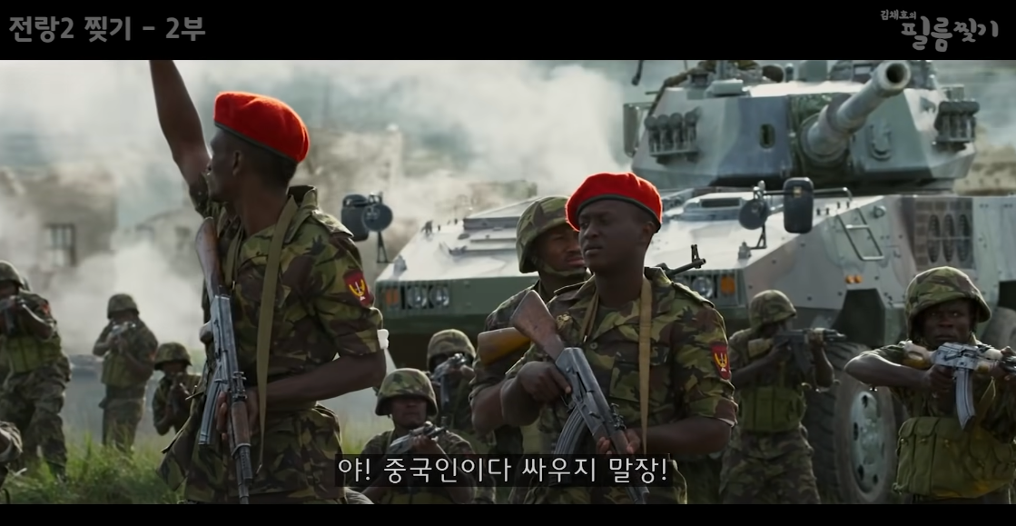 중국인이 오성홍기(중국 국기)를 휘날리면 아프리카 정부분과 반군 모두 싸움을 멈추고 중국인이 지나가길 기다리는 장면도 나오며